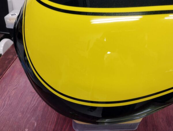 3次曲面のバイクのタンクはとても硬く何度もグルーガンと自作のプーラーで引っ張りましたが奇麗に元通りとはいきません。